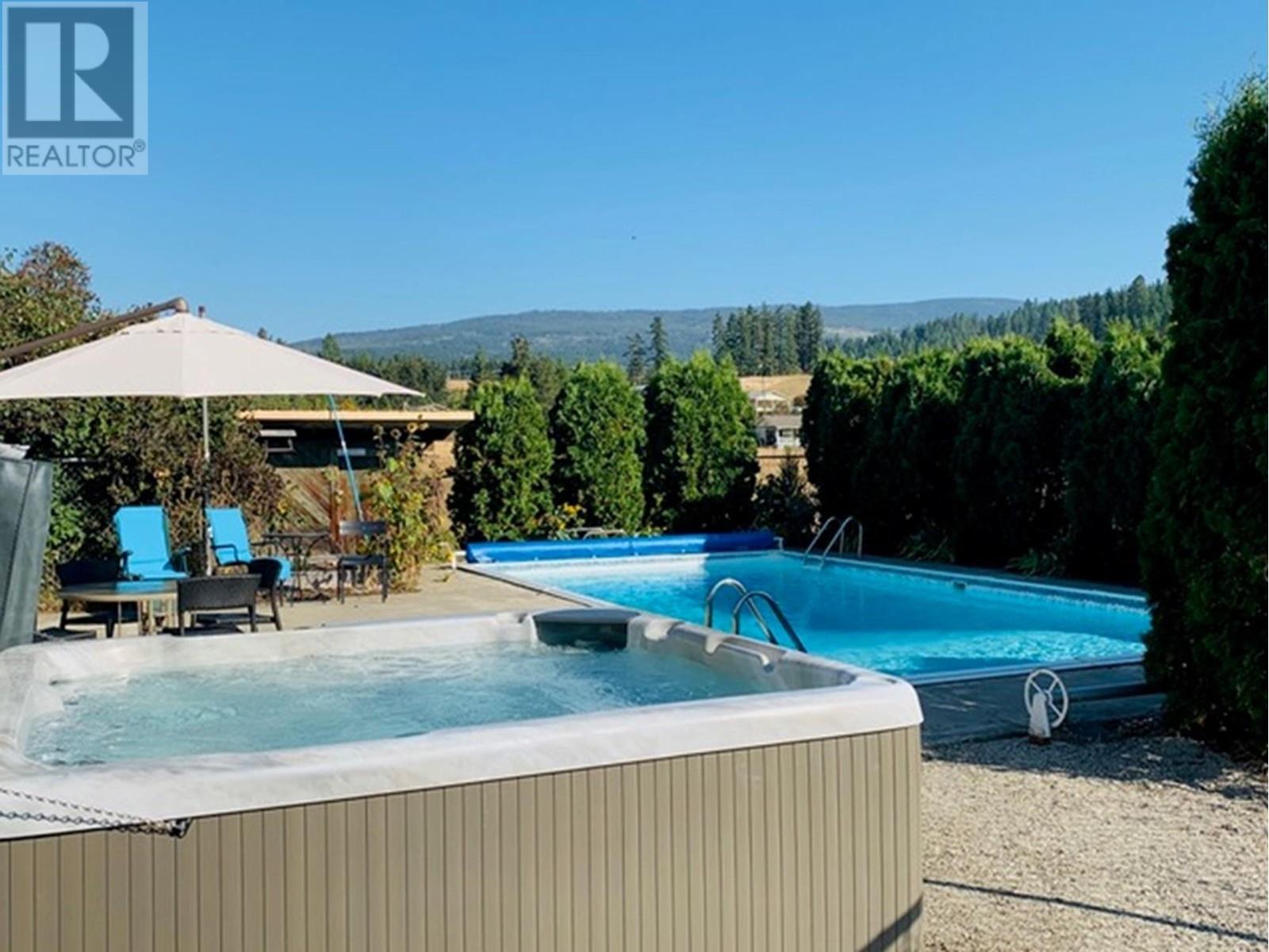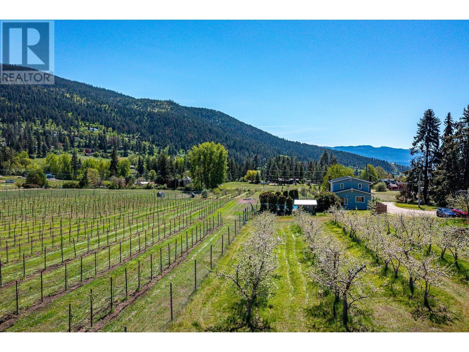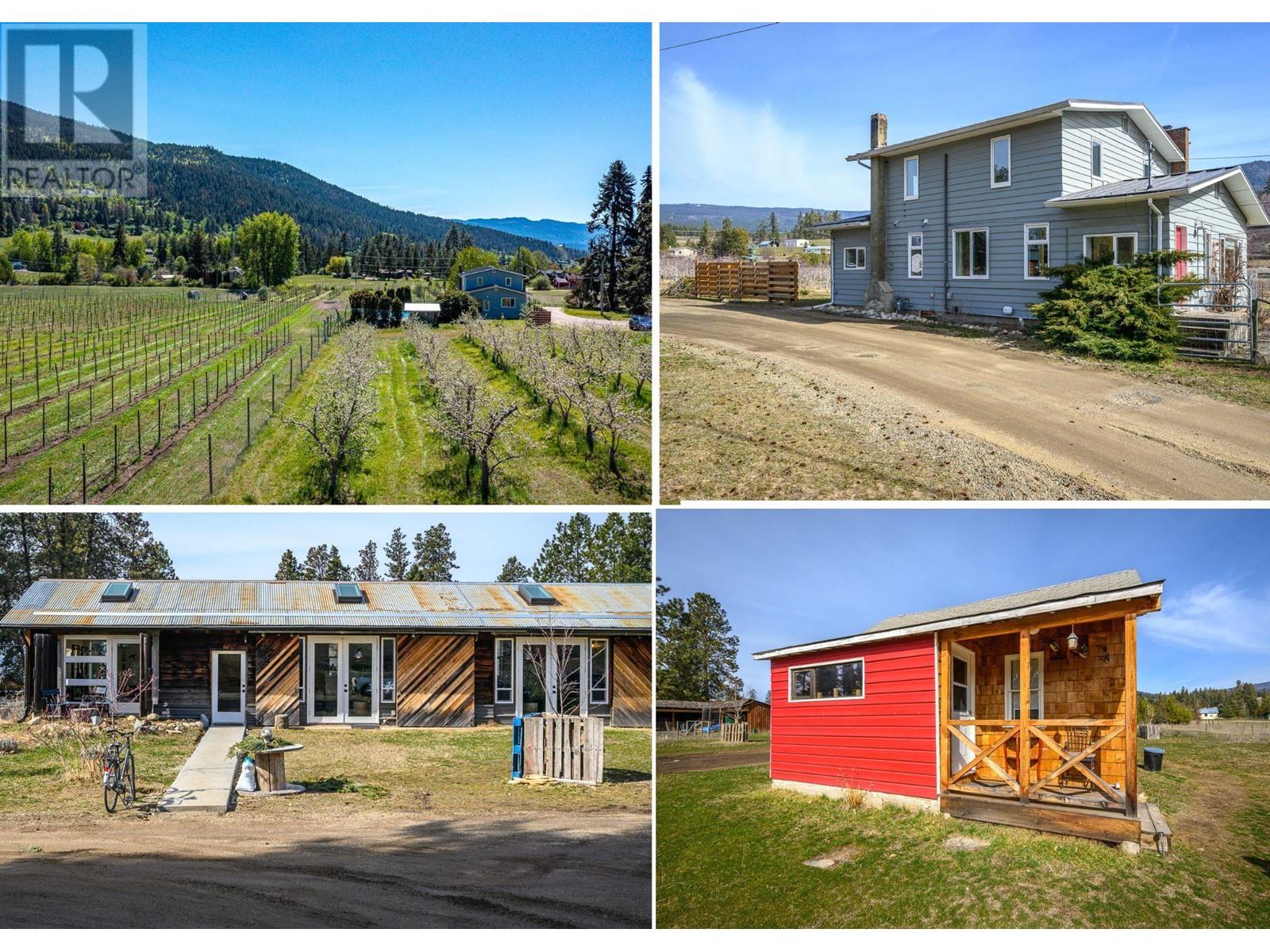 Nestled on almost 11 flat acres of picturesque countryside, this meticulously updated home offers a serene escape with views of Vernon, Silver Star Mtn & surrounding hillsides. Boasting 2 titles, this property presents a unique opportunity for versatility & expansion. Pear trees & lavender line the lane leading to the house & accent trees have been planted throughout the farmyard. The house & outbuildings have been restored using reclaimed materials, highlighting large wood beams, hardwood floors & trims. Modern features & high efficiency utilities are incorporated throughout. The main house features 4 beds, 2 baths, open-concept living area, a bright & airy country kitchen & cozy fireplace. Cool off in the sparkling pool on hot summer days, or unwind in the hot tub under a blanket of stars. The patio area with mature privacy hedge is ideal for hosting BBQs & al fresco dining. For those with a green thumb & a passion for sustainable living, this property offers endless possibilities. 5 acres have been devoted to newly planted organic orchard (deer fenced). An acre of mixed planting blends pear, apple, plum, herbs & berries. Embrace the farm-to-table lifestyle & indulge in fresh, homegrown produce from your own backyard. This property features several potential income opportunities, providing steady income while allowing you to enjoy the tranquility of country living.10 min from Downtown Vernon this property offers the perfect balance of seclusion & accessibility. (id:17834)