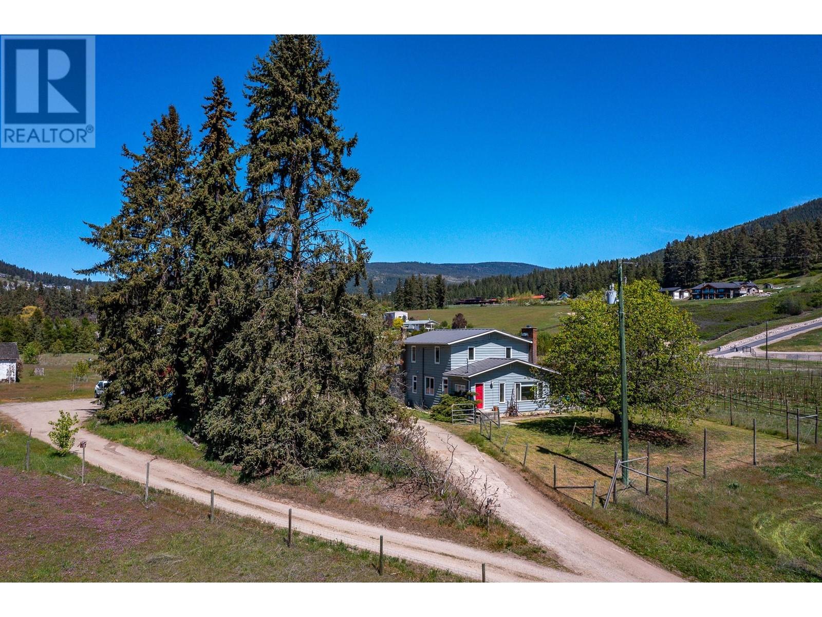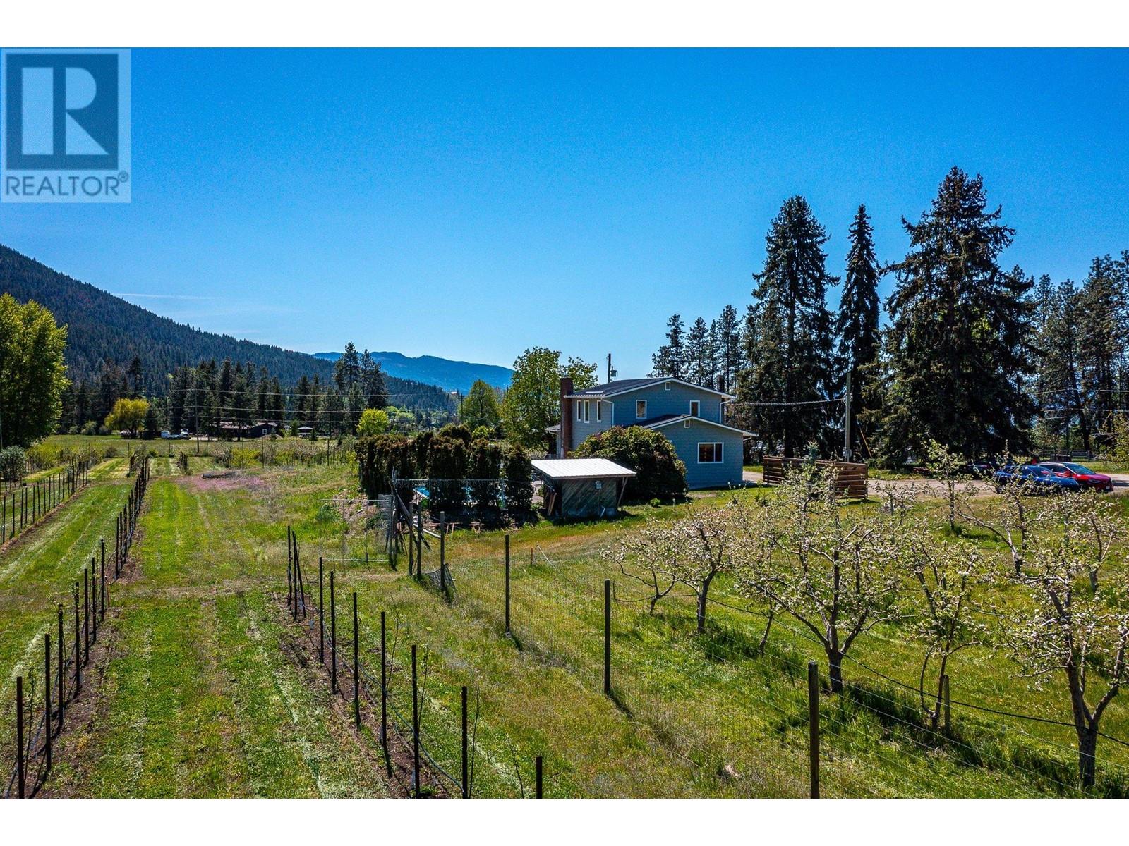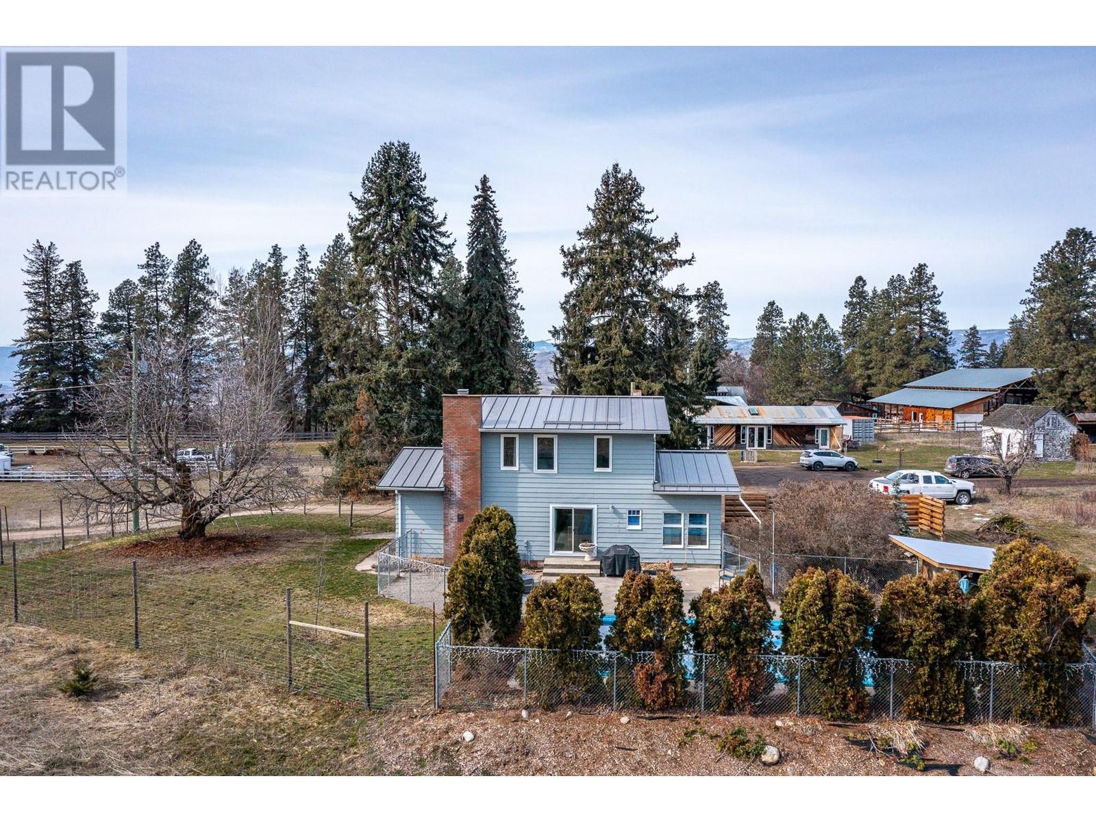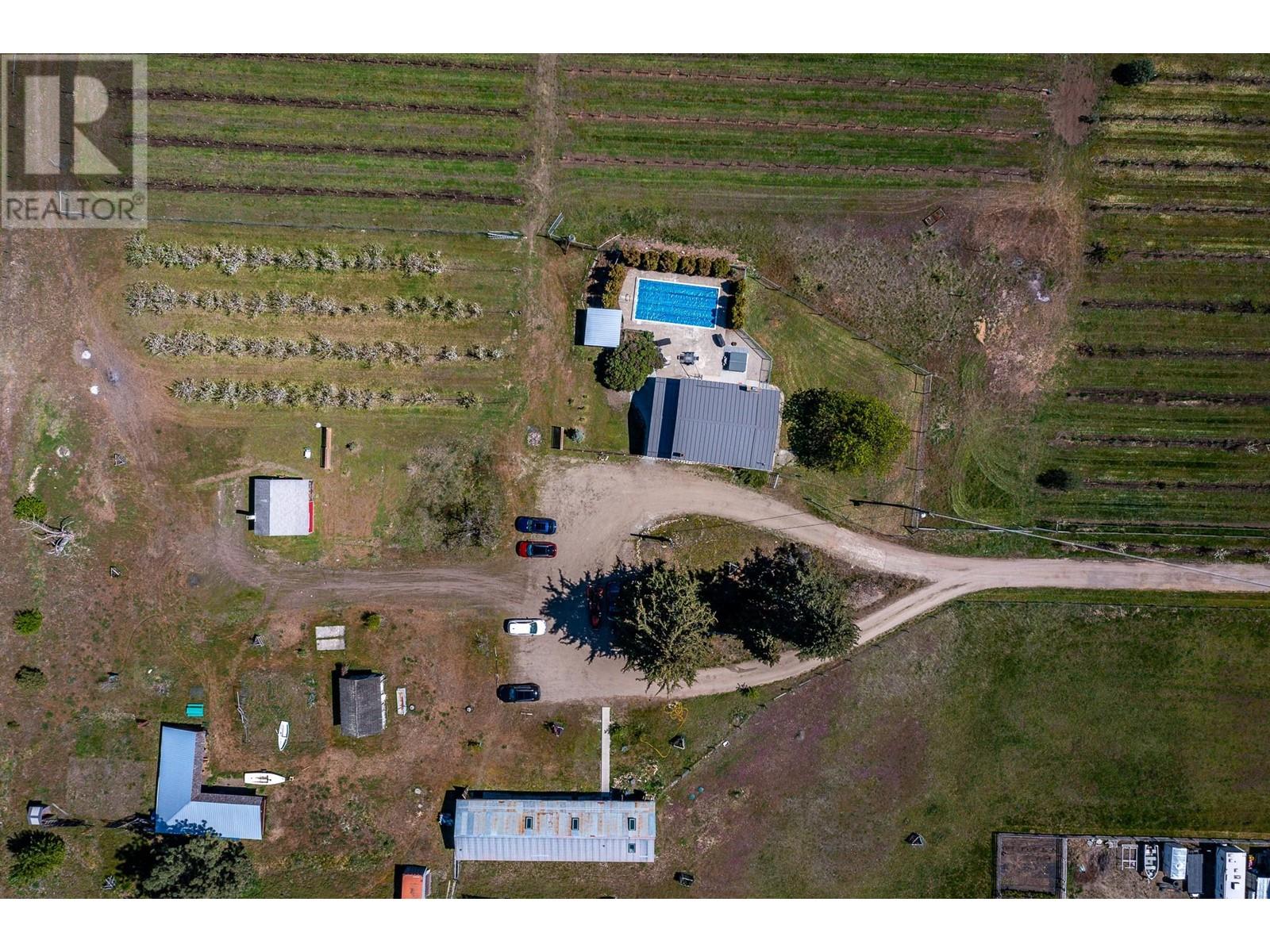 Nestled on almost 11 flat acres of picturesque countryside, this meticulously updated home offers a serene escape with views of Vernon, Silver Star Mtn & surrounding hillsides. Boasting 2 titles, this property presents a unique opportunity for versatility & expansion. Pear trees & lavender line the lane leading to the house & accent trees have been planted throughout the farmyard. The house & outbuildings have been restored using reclaimed materials, highlighting large wood beams, hardwood floors & trims. Modern features & high efficiency utilities are incorporated throughout. The main house features 4 beds, 2 baths, open-concept living area, a bright & airy country kitchen & cozy fireplace. Cool off in the sparkling pool on hot summer days, or unwind in the hot tub under a blanket of stars. The patio area with mature privacy hedge is ideal for hosting BBQs & al fresco dining. For those with a green thumb & a passion for sustainable living, this property offers endless possibilities. 5 acres have been devoted to newly planted organic orchard (deer fenced). An acre of mixed planting blends pear, apple, plum, herbs & berries. Embrace the farm-to-table lifestyle & indulge in fresh, homegrown produce from your own backyard. This property features several potential income opportunities, providing steady income while allowing you to enjoy the tranquility of country living.10 min from Downtown Vernon this property offers the perfect balance of seclusion & accessibility. (id:17834)